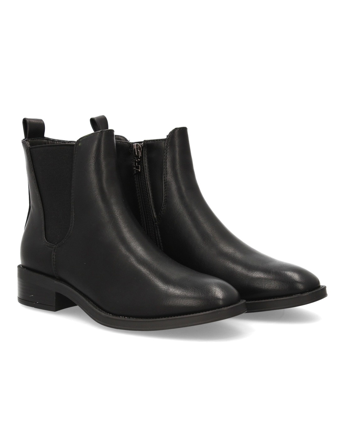 Botín plano para mujer con diseño tipo chelsea incorpora elástico lateral, suela baja y ligera. Cierre de Cremallera interior ideal para la temporada de otoño invierno.