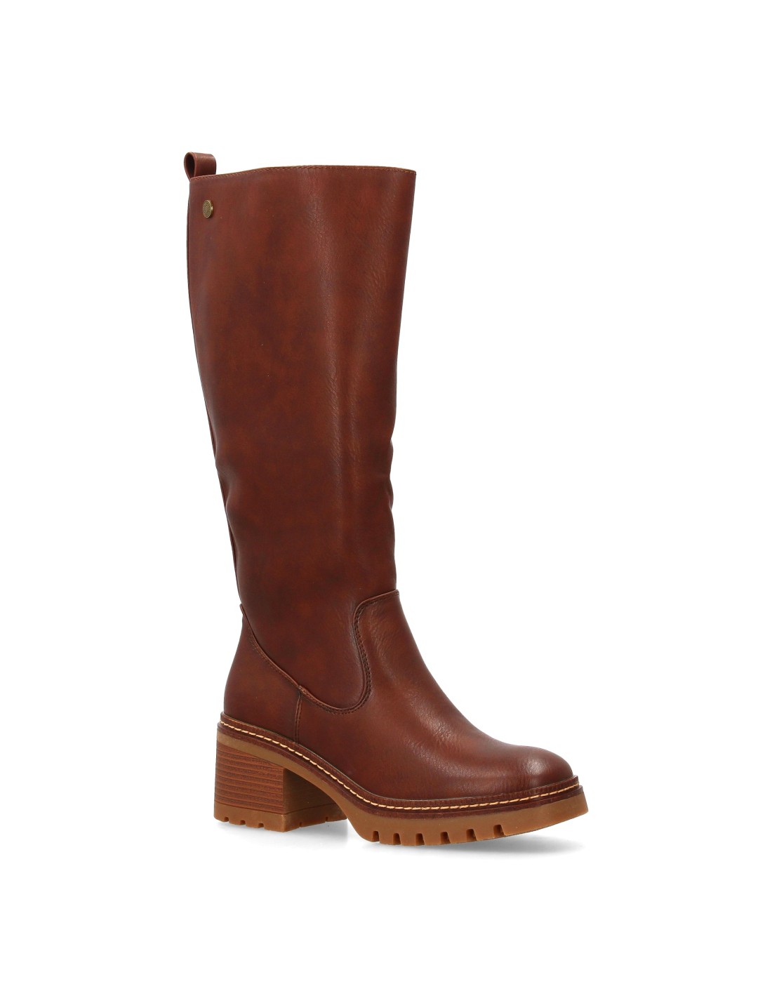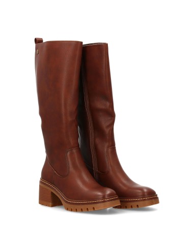 Bota de caña alta para mujer con diseño elegante. Cuenta con tacón ancho y suela dentada. Cierre de Cremallera interior ideal para la temporada de otoño invierno.