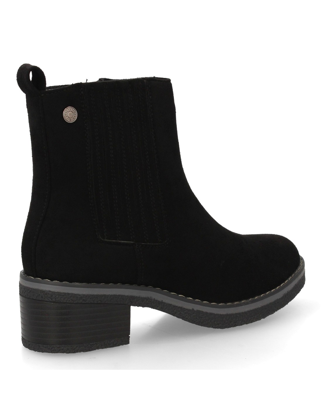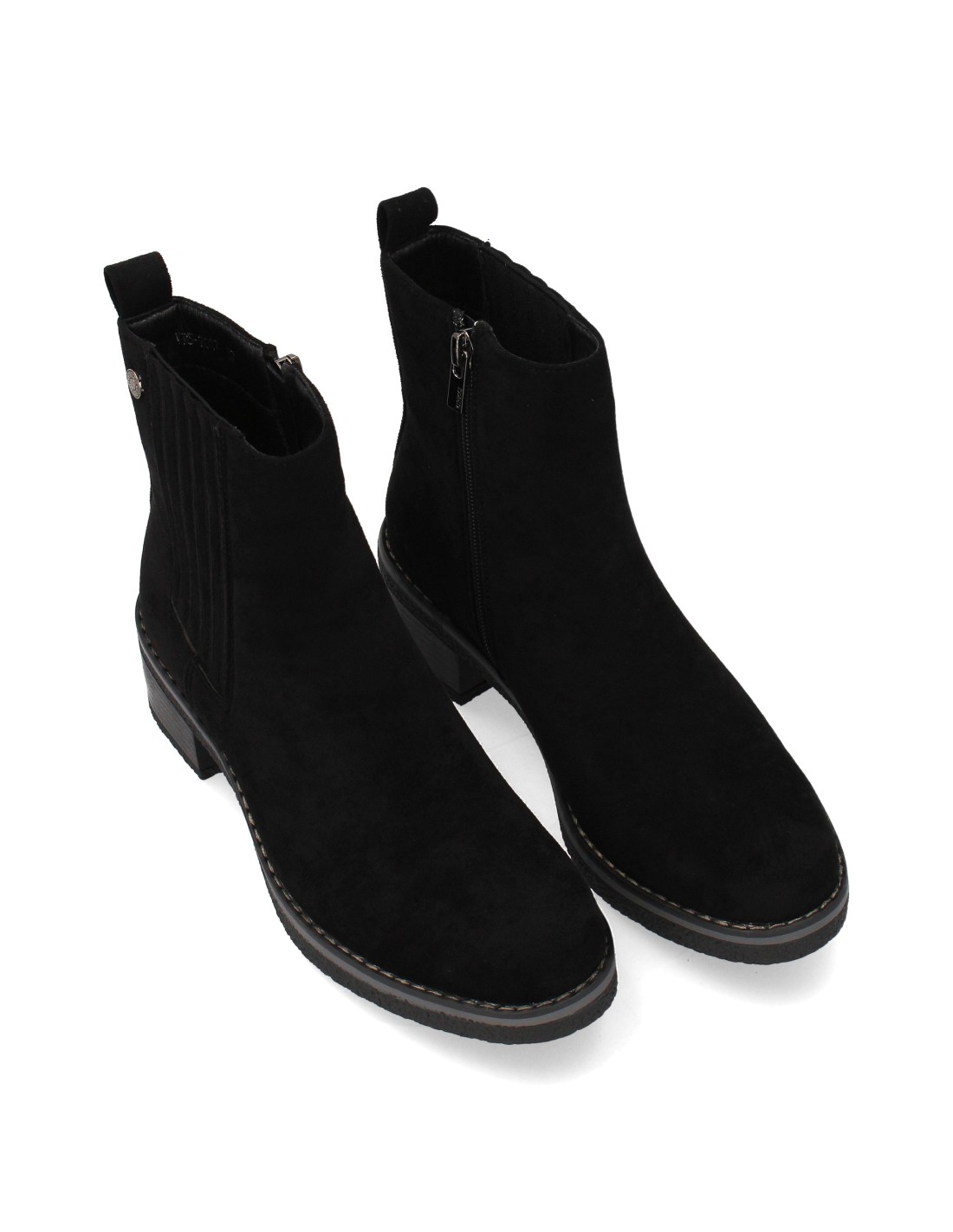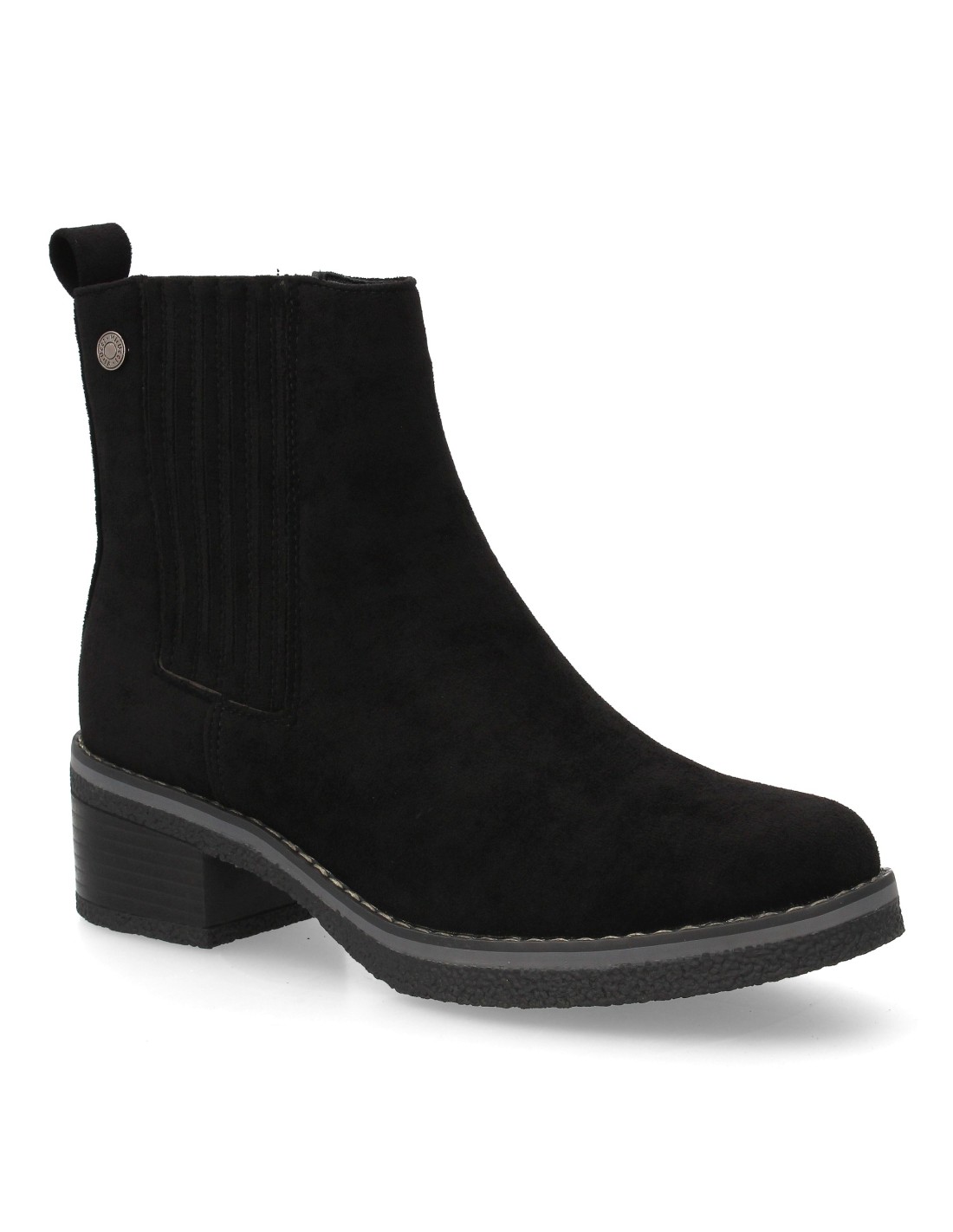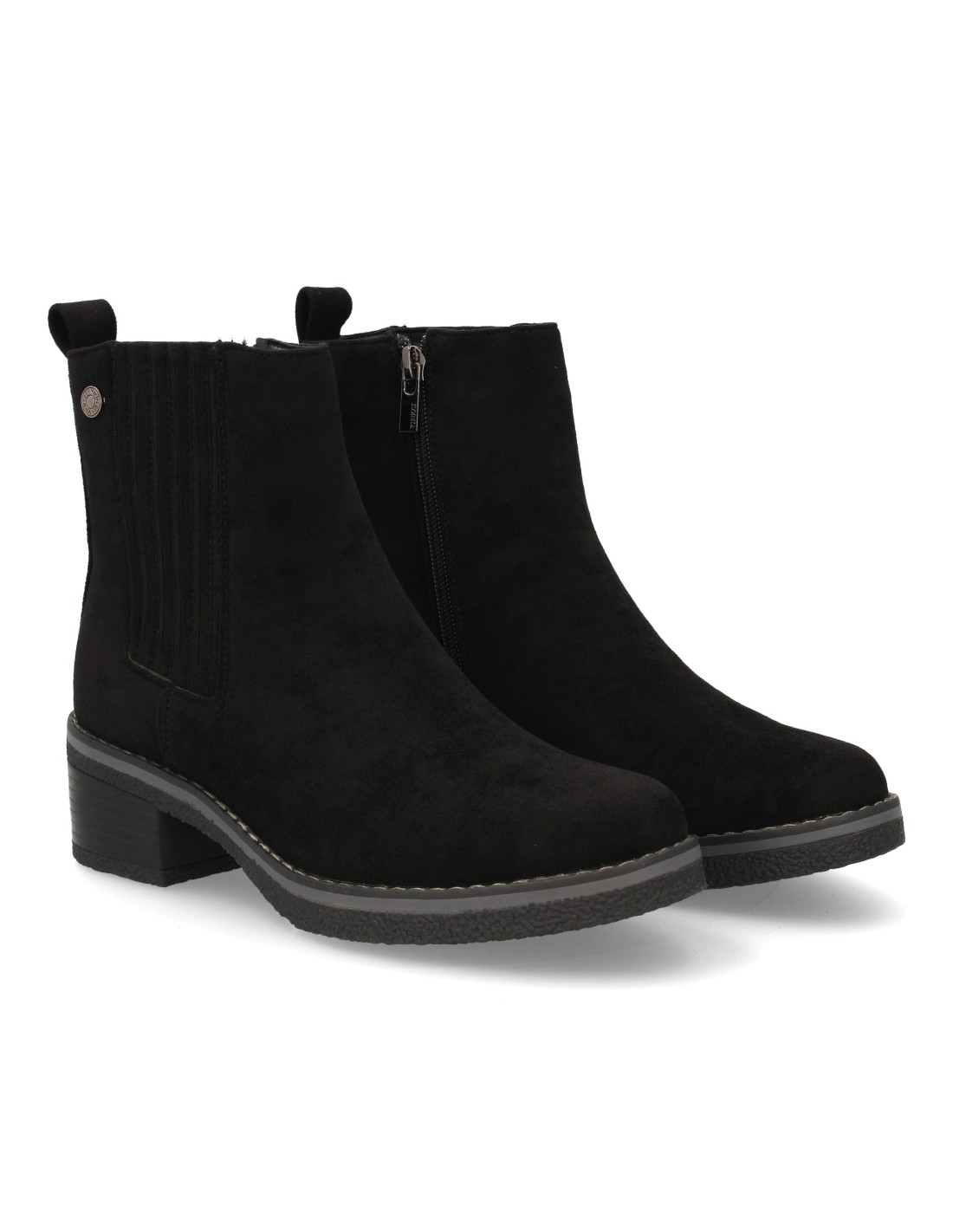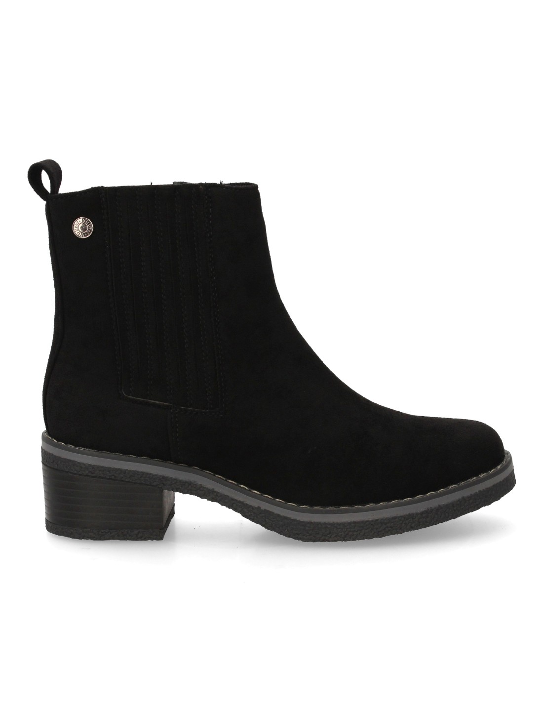 Botín para mujer con diseño tipo chelsea ideal para la temporada Otoño Invierno. Con paneles elásticos laterales que facilitan el ajuste, tacón bajo cómodo para uso diario.