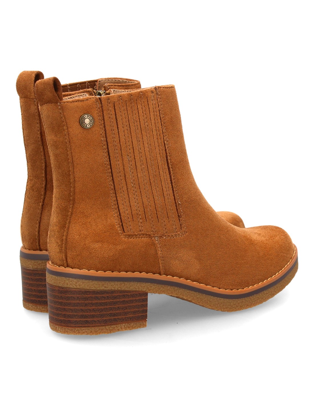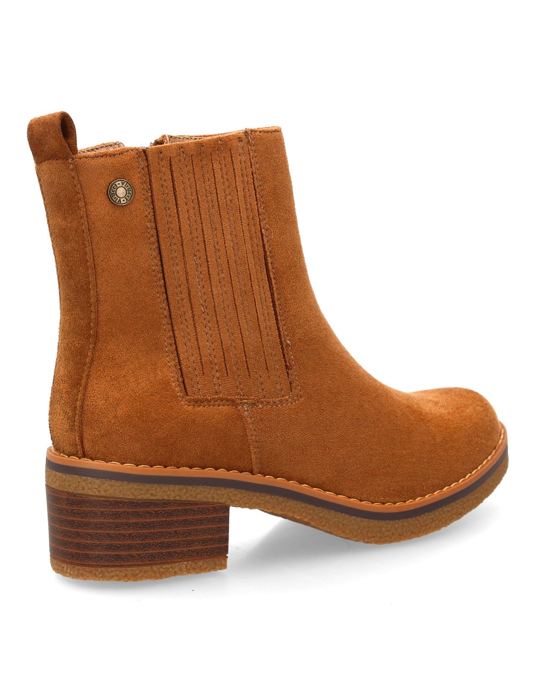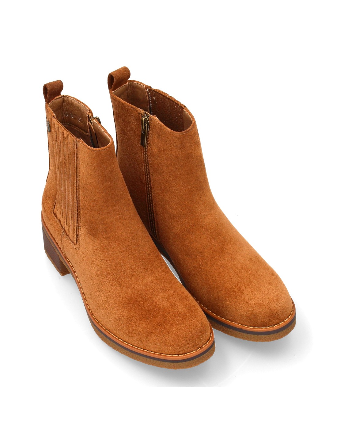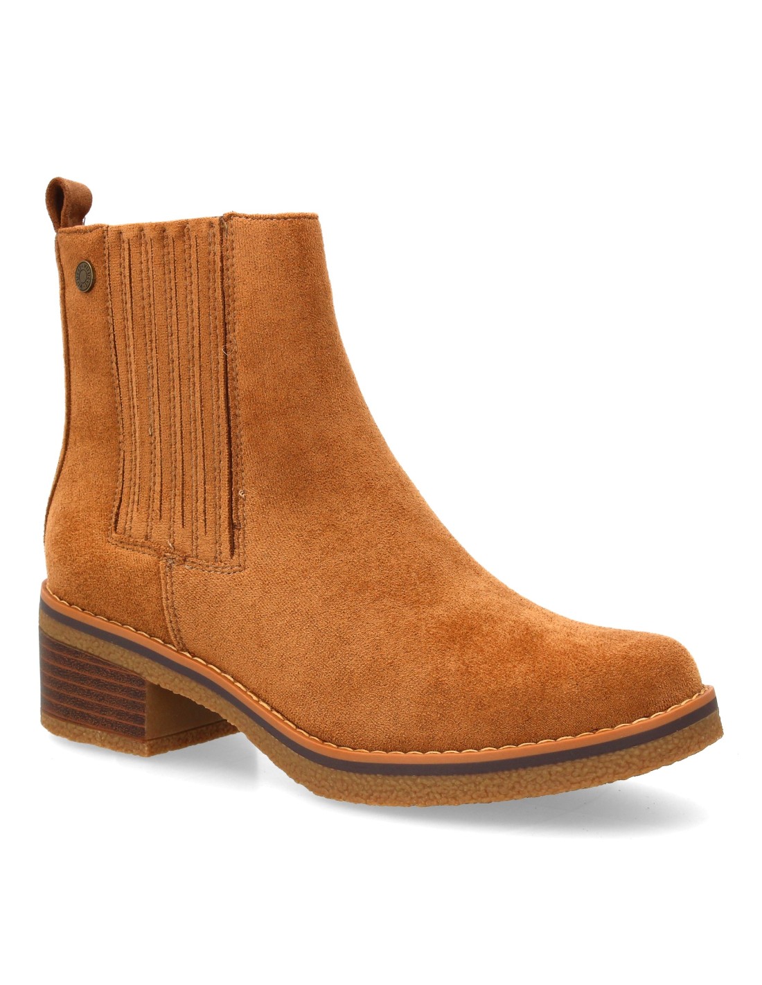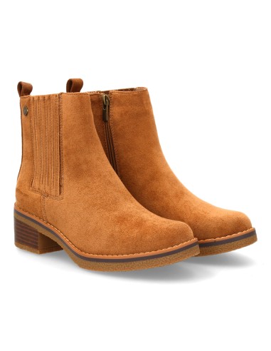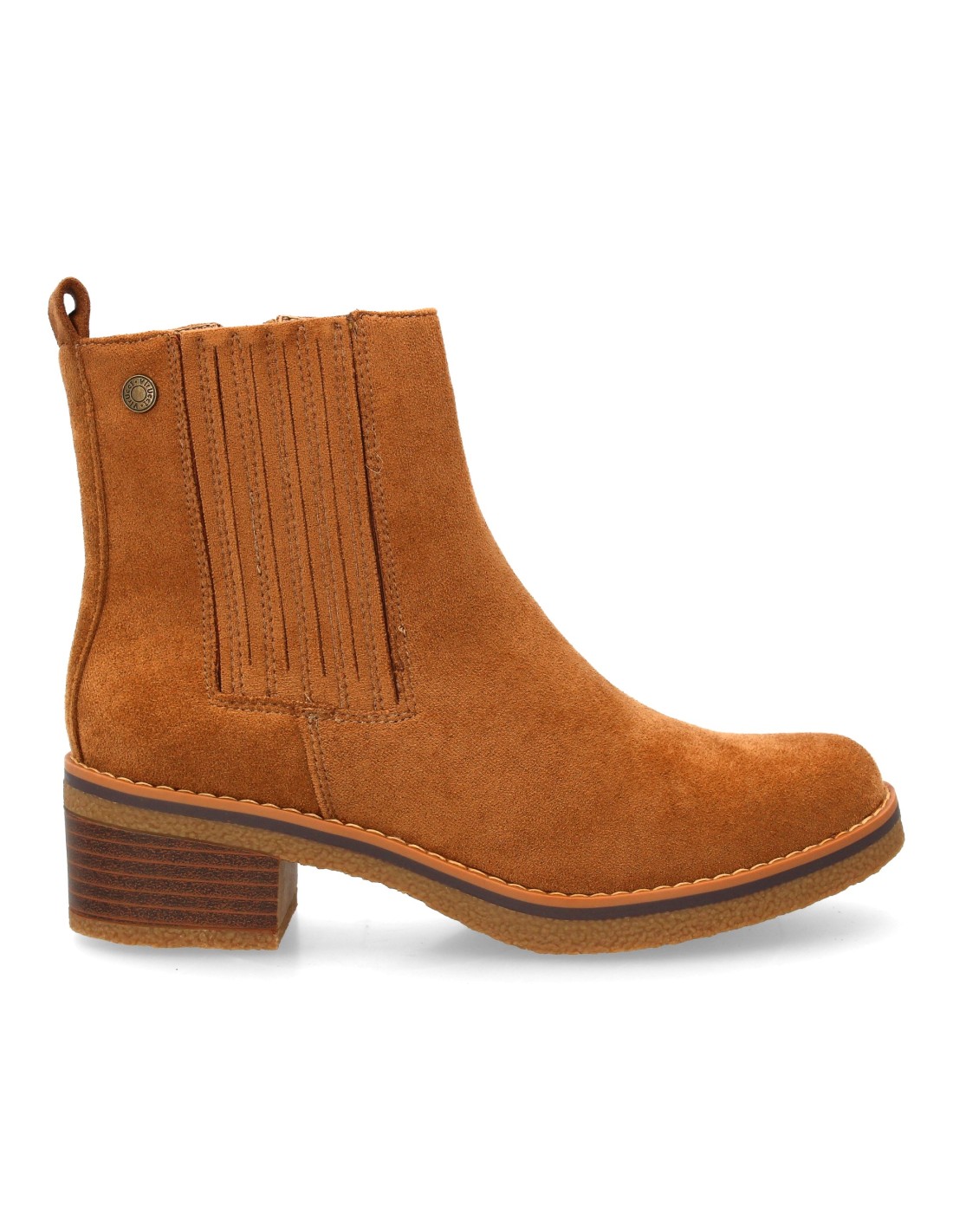 Botín para mujer con diseño tipo chelsea ideal para la temporada Otoño Invierno. Con paneles elásticos laterales que facilitan el ajuste, tacón bajo cómodo para uso diario.