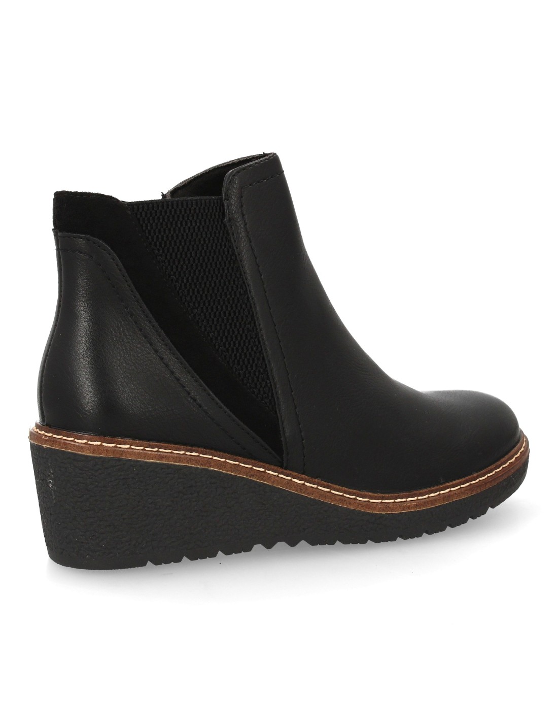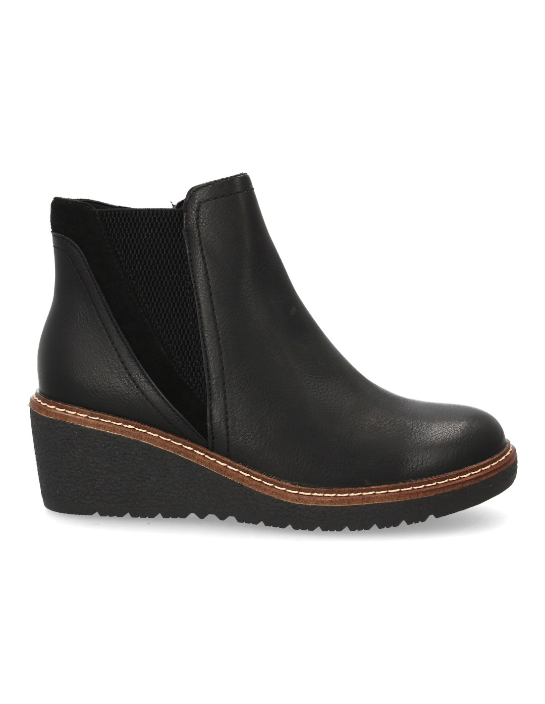 Botín para mujer con cuña y elástico en el lateral, estampado liso y cierre de cremallera. Ideal para la temporada de otoño invierno. Comodo, para uso diario.