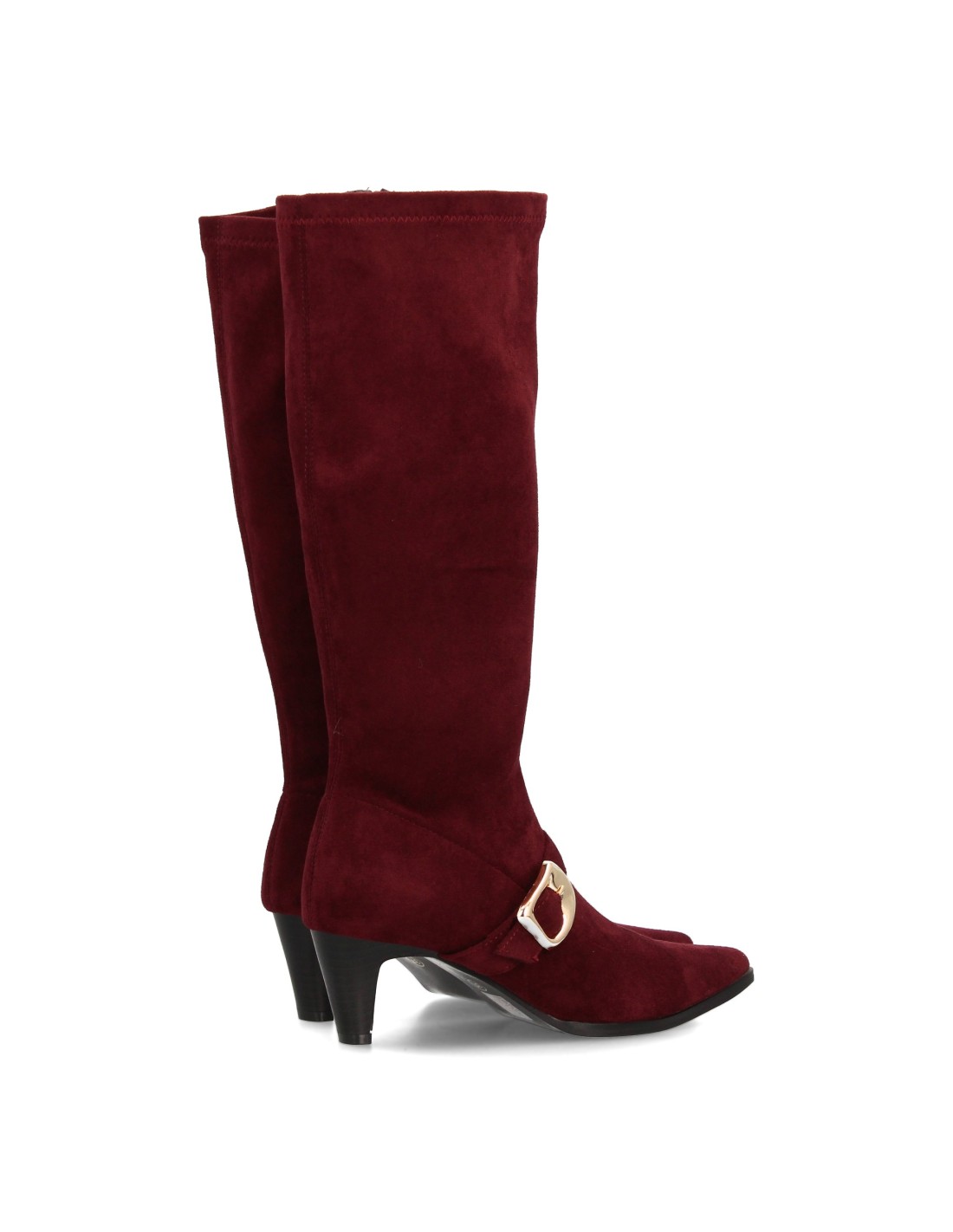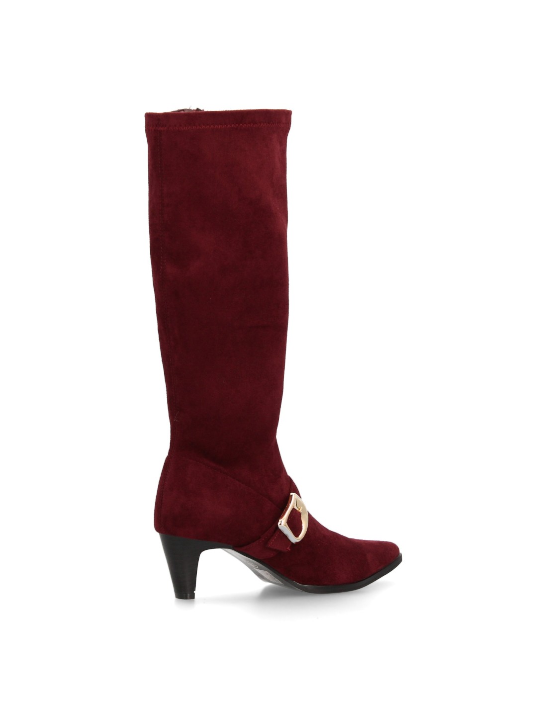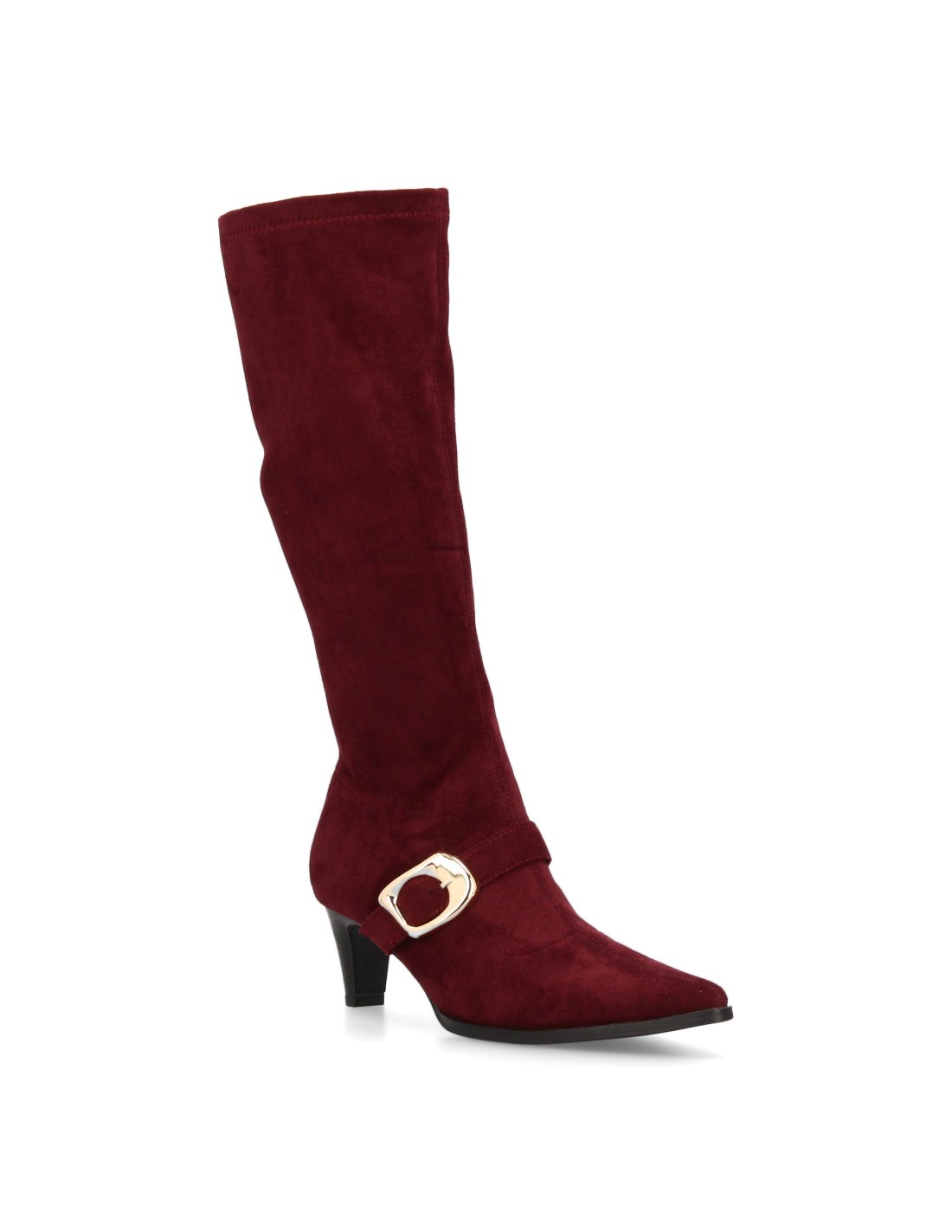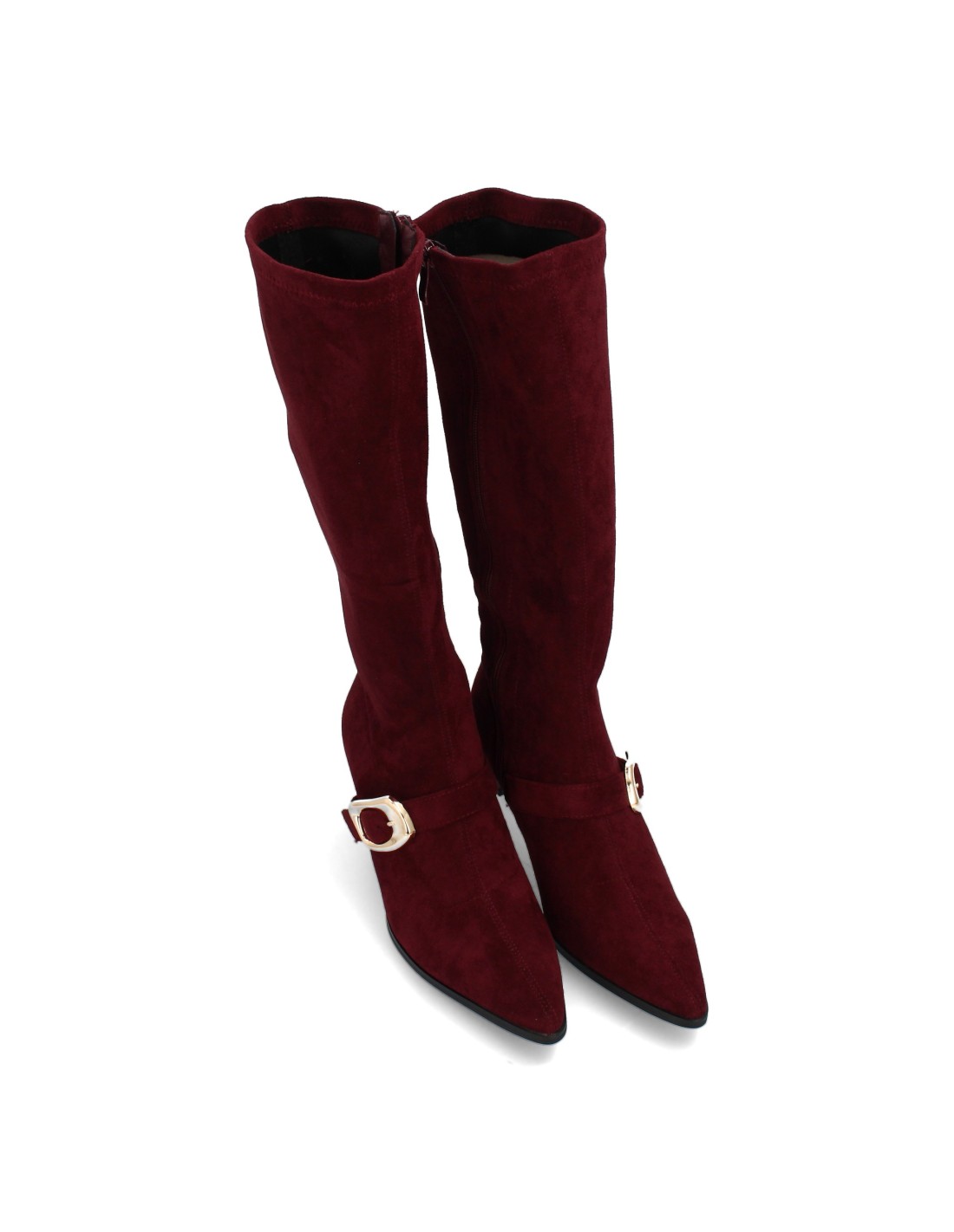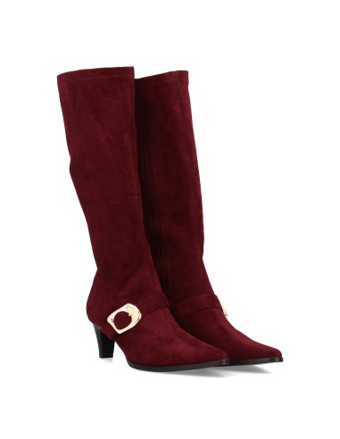 Bota alta para mujer con punta fina y tacón, estampado liso elegante. Hebilla grande decorativa. Ideal temporada otoño invierno.