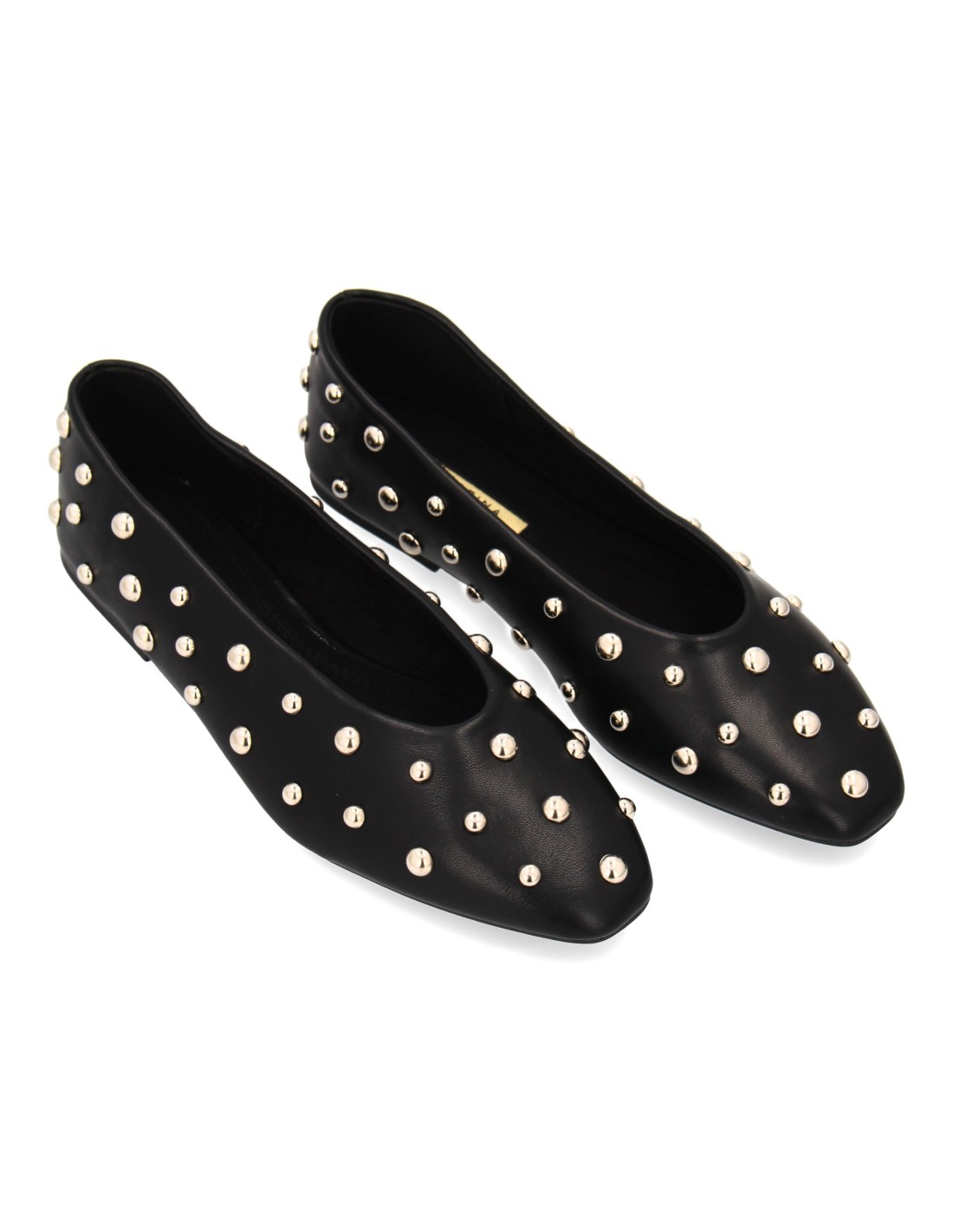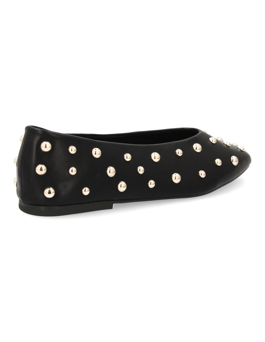 Bailarina elegante con tachuelas metálicas diseño moderno. Su punta fina y suela plana garantizan comodidad. Sin cierre, ideal para mujer temporada Otoño Invierno.