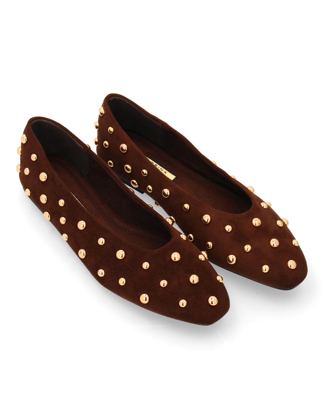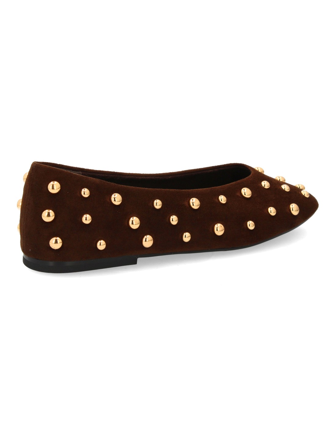 Bailarina elegante con tachuelas metálicas diseño moderno. Su punta fina y suela plana garantizan comodidad. Sin cierre, ideal para mujer temporada Otoño Invierno.